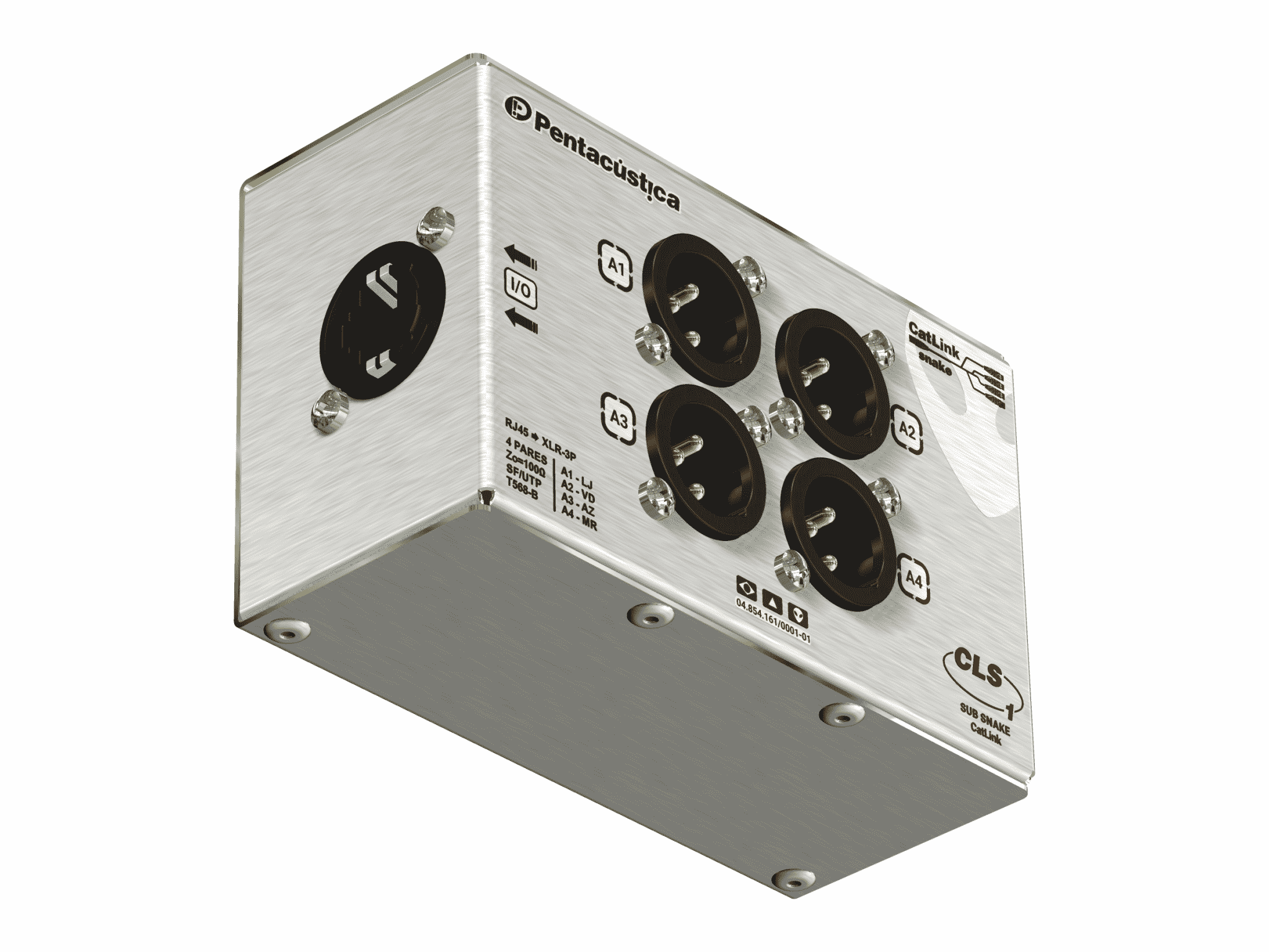 Cat Link Snake, RJ45 para 4 XLR-3 macho montados em gabinete de aço inox.