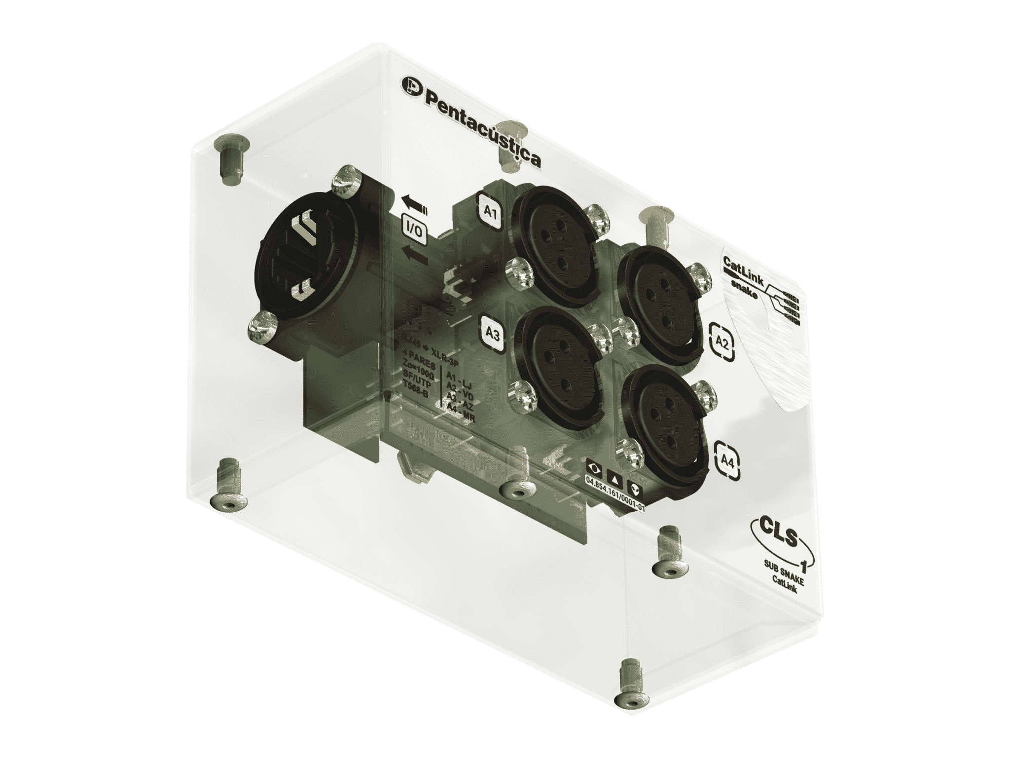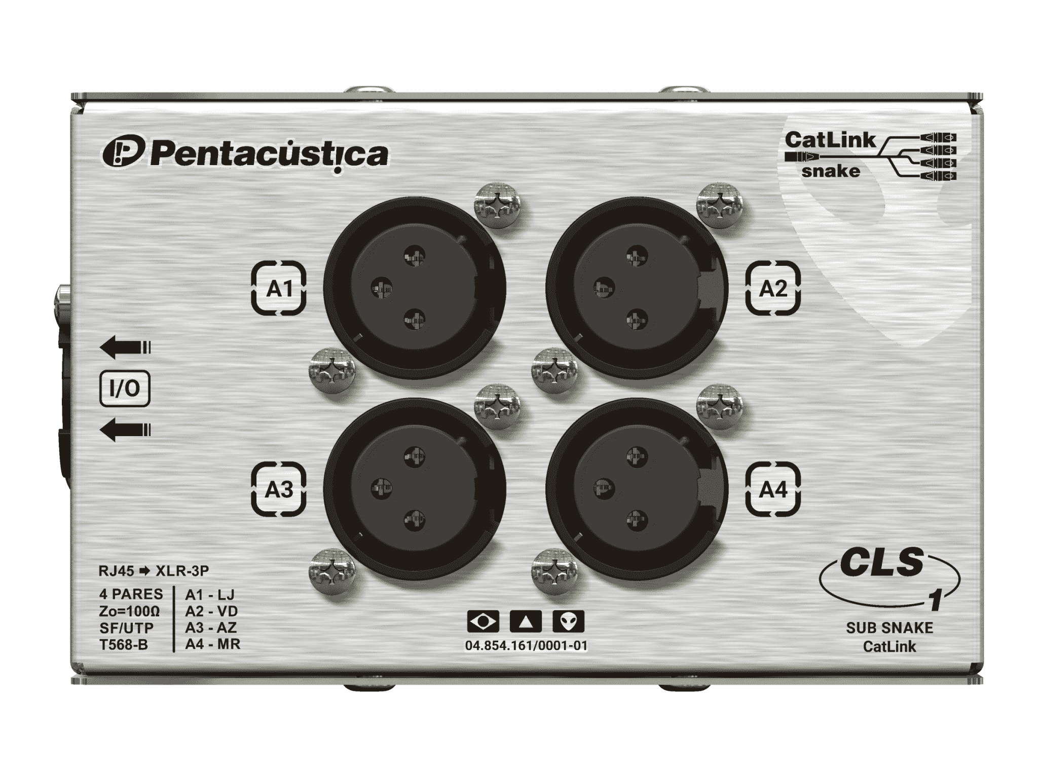 Cat Link Snake, RJ45 para 4 XLR-3 fêmea montados em gabinete de aço inox.