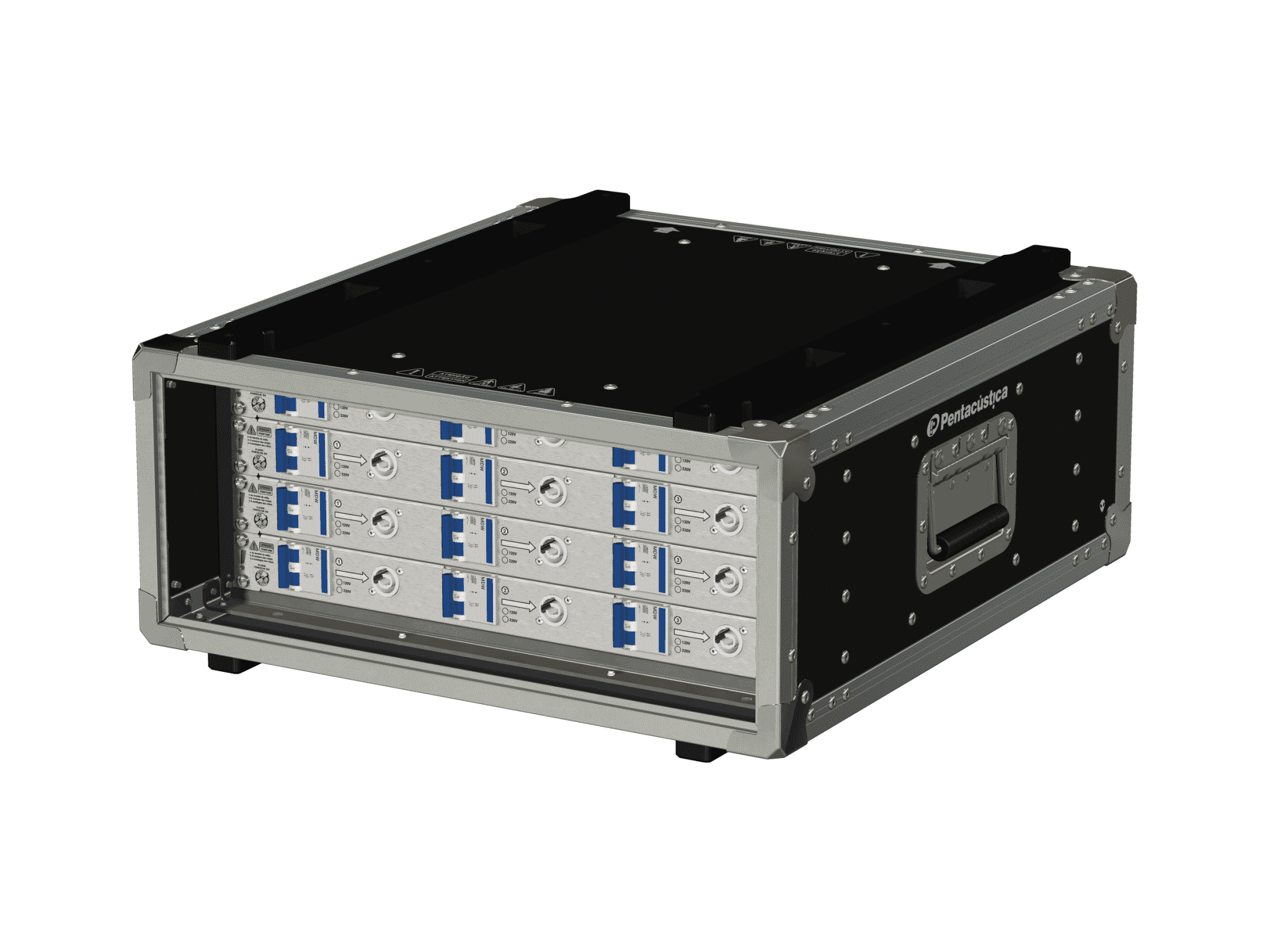 - Gabinete: Hard Case CPT-4x4P, fabricado com materiais compostos, 4U de altura, tampas flat e apoios em plástico industrial. Isolação Classe I e grau de proteção IP-2X.