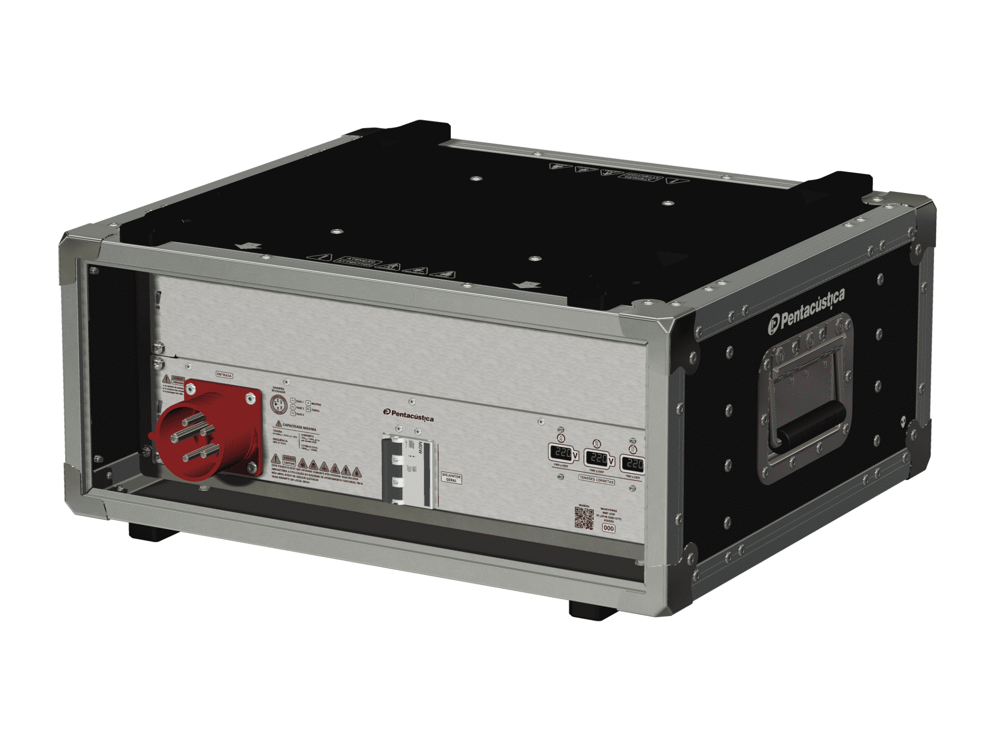 - Gabinete: Hard Case CPT-4x2P, fabricado com materiais compostos, 4U de altura, tampas flat e apoios em plástico industrial . Isolação Classe I e grau de proteção IP-2X.