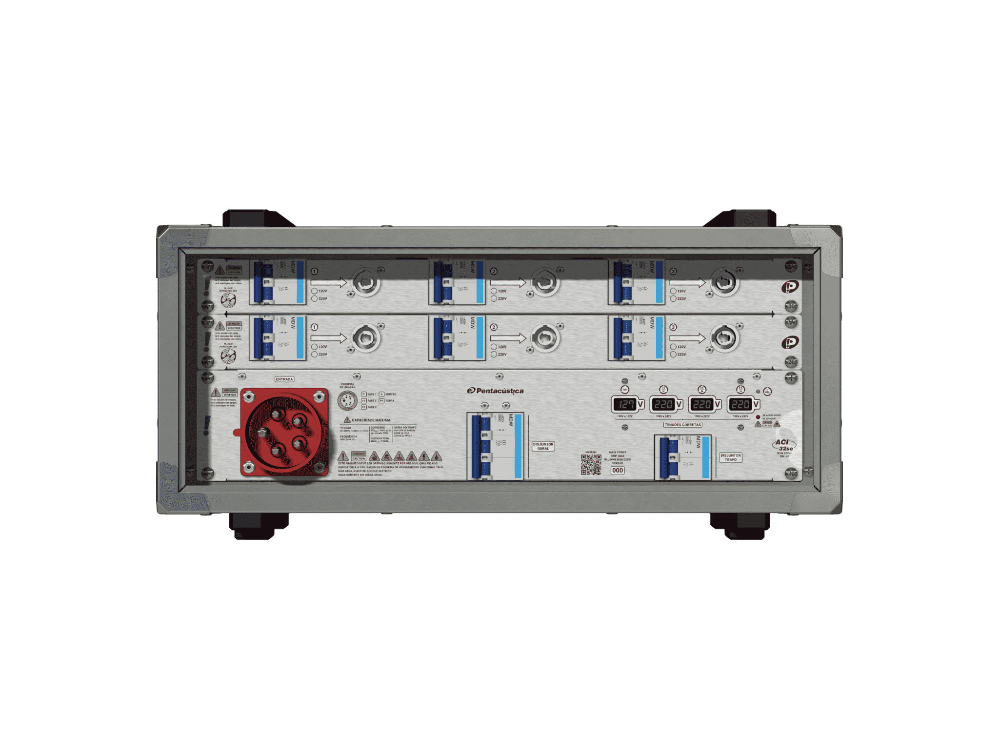 - Saídas 127V: 6x Powercon-20A protegidas por disjuntores individuais 10A/B.