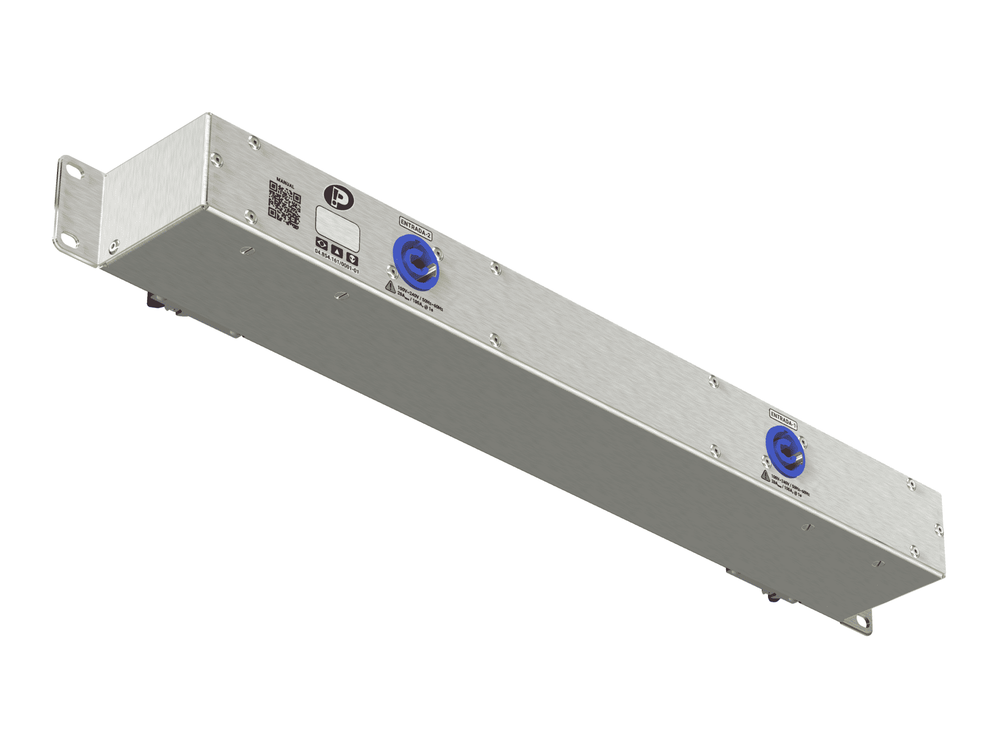 - Cada entrada é direcionada para um disjuntor 20A/C e duas tomadas NBR, 20A, 3 polos.